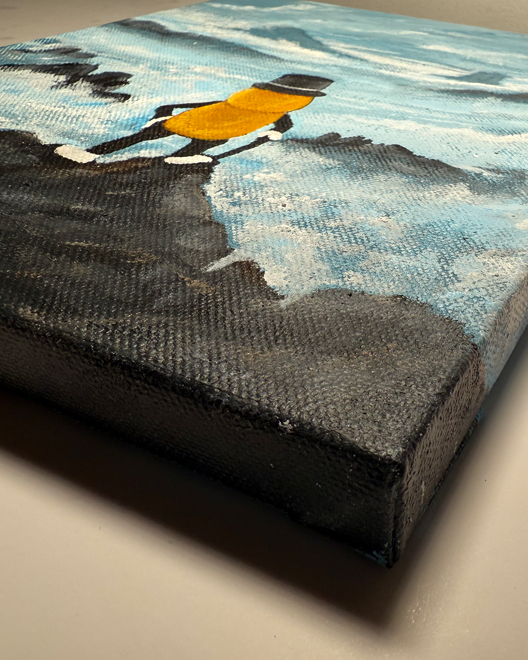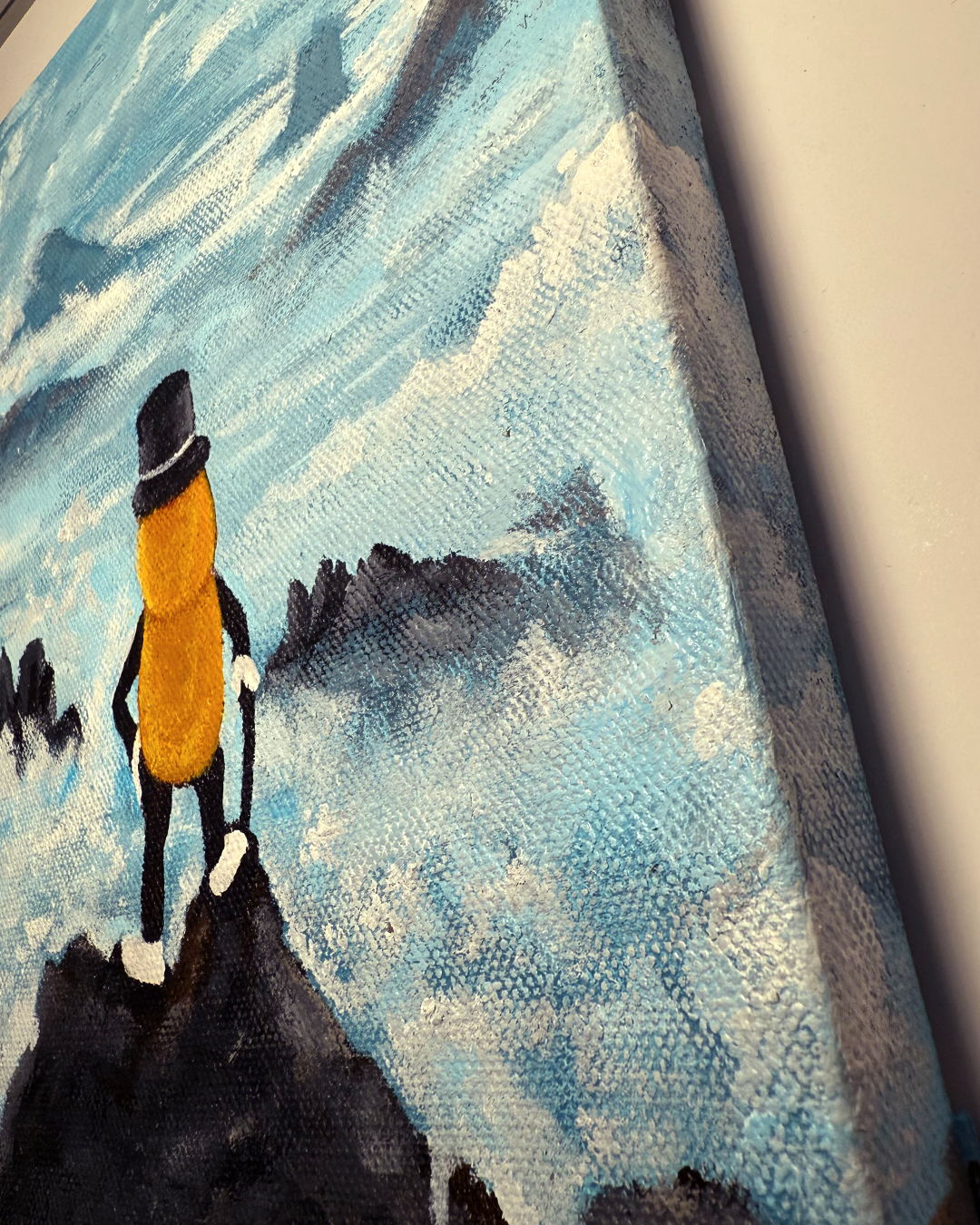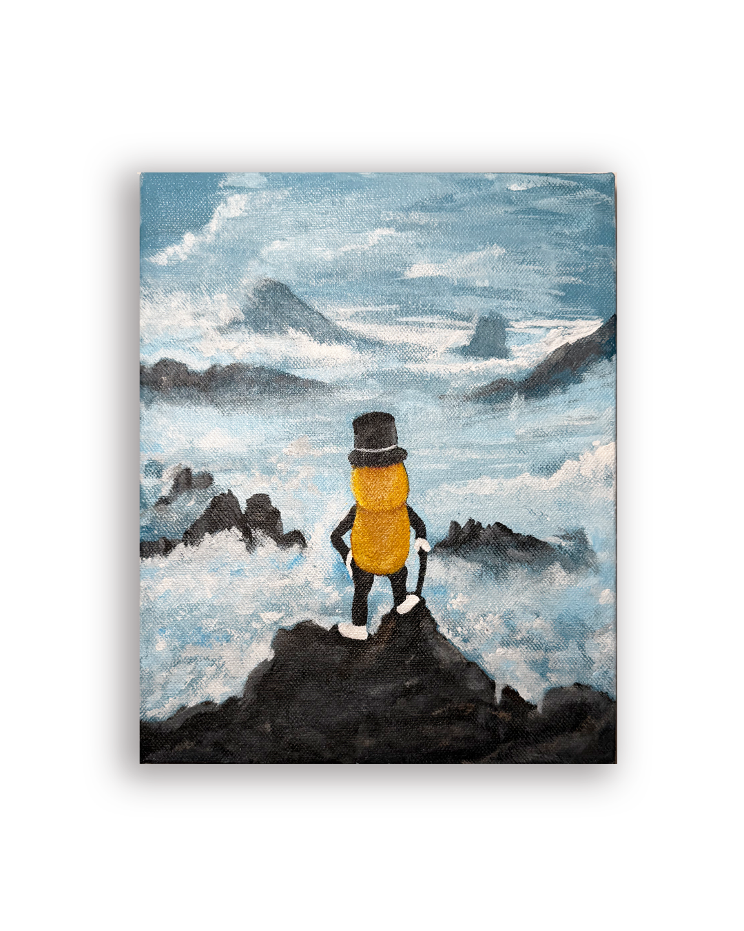It’s not AI. This is a one-of-a-kind hand painted image you won’t find anywhere else. Mr. Peanut stands tall in the famous Sea of Fog scene. Funny, classy, and totally original. When it’s sold, it’s gone for good.